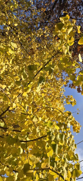 立派な銀杏が傾き始めた陽の光に照らされて光っていました。